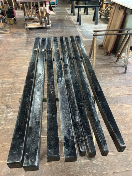 担ぎ棒を半割にしてつかいました。馬ウマの脚はコンパクトにして新しい台へ
