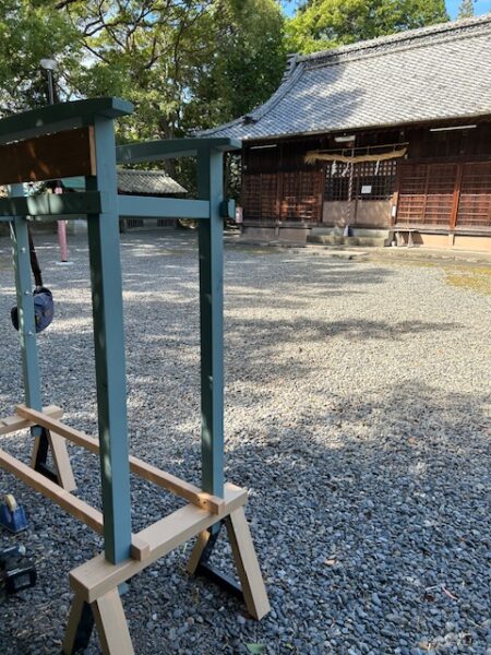 御神輿自体は、ご供養して解体しましたが担ぎ棒と神輿を置くウマ脚台を活かし、